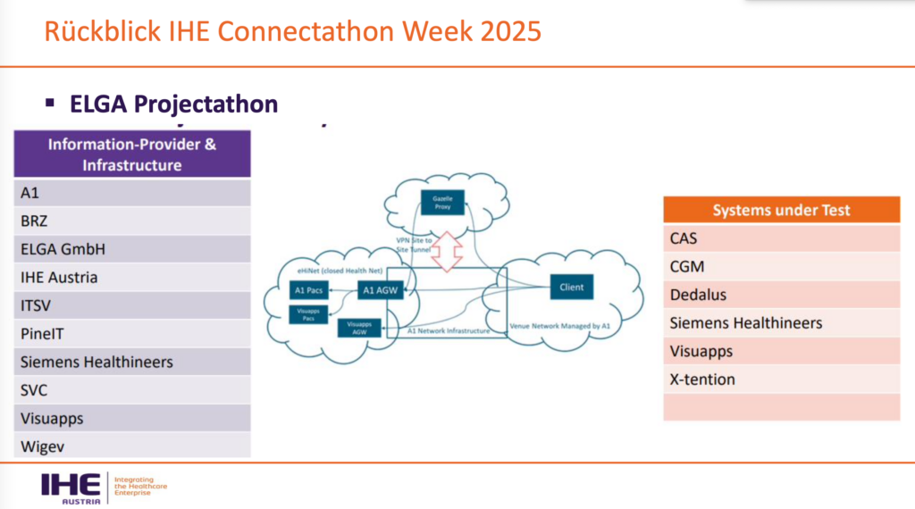 Am 12. November 2025 fand in Wien unser jährlicher „IHE Day“ im Tech Gate Wien und Online statt. Nach der Eröffnung durch den IHE-Sprecher Herwig Loidl gab Alexander Schanner einen detaillierten Rückblick auf den IHE Connectathon (CAT), insbesondere auf den ELGA Projectathon.